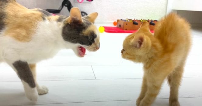 Men den större katten var inte helt nöjd med tilltaget – åtminstone inte till en början.