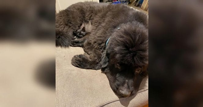 Vem har sagt att hundar och katter inte kan vara bästa vänner?