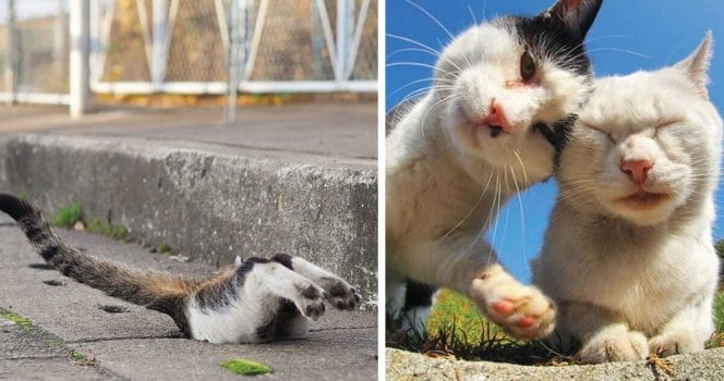 Vad som är ännu härligare att se, är att katter kan vara mer än nöjda bara de har någon att dela sin vardag med. Se bara på de här bilderna som den japanske fotografen Nyankichi Rojiupa tagit. De visar hemlösa katter som lever livet tillsammans, utan att verka ha ett enda bekymmer i världen.