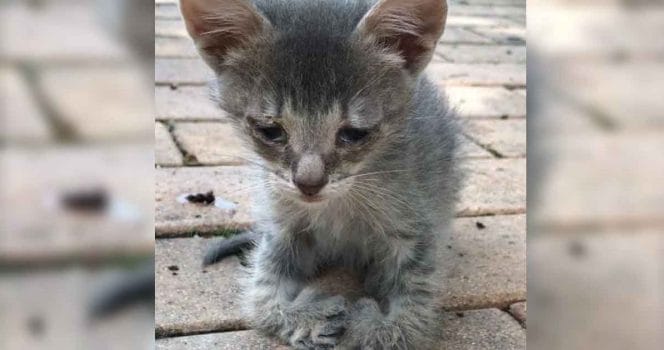 Den här lilla kämpen hade fått en tuff start i livet, men är ändå beslutsam om att göra det bästa av situationen. När djurvännerna på katthemmet ”Here Kitty Kitty Rescue” hittade honom för två år sedan hade han en fruktansvärd ögoninfektion och problem med att äta.