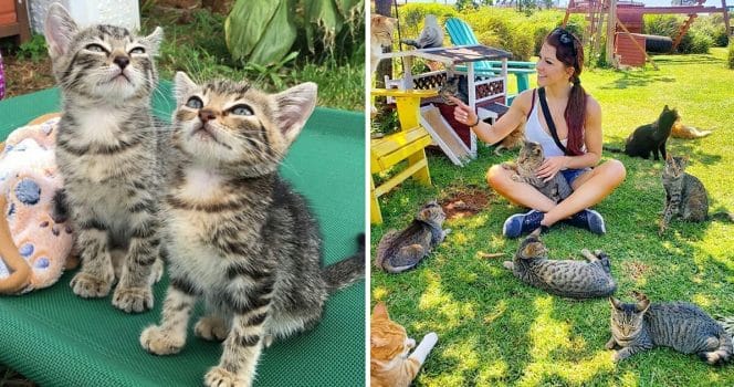 Katterna är både stora och små och kan göra vad de vill hela dagarna – vare sig det är att leka, äta, sova eller springa.