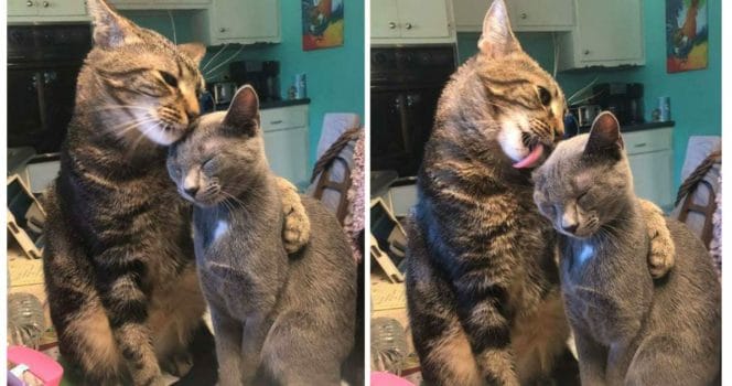 De två katterna fann omedelbart varandra och blev snabbt bästa vänner.
