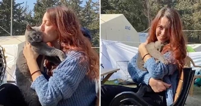 En av katterna som försvann när jordbävningen slog till är den grå katten Leyla. Hennes ägare Rumeysa blev skadad i jordbävningen och rusades till ett sjukhus i Istanbul.