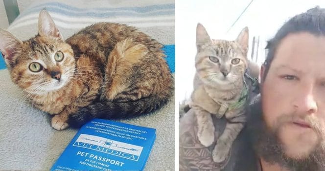 Dean märkte att hon var väldigt smal och gav henne lite mat – vid den tidpunkten fanns ingen återvändo. Kattungen vägrade att lämna Deans sida och följde efter honom tacksamt för den goda maten. Hon är en otrolig katt med stor personlighet som Dean bestämde sig för att ta med vidare på sin resa.