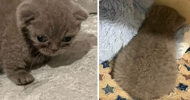 ”Lilla Penny är omkring 3-4 veckor gammal och är extremt beroende av människor, tyvärr fanns inga andra kattungar eller någon mamma i området”, skriver de.