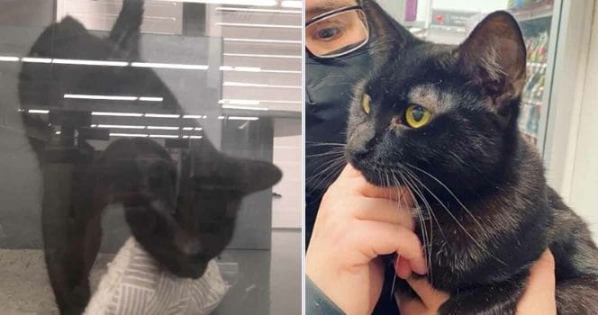 Det hängde nämligen en liten lapp på kattens bur som beskrev hennes situation.