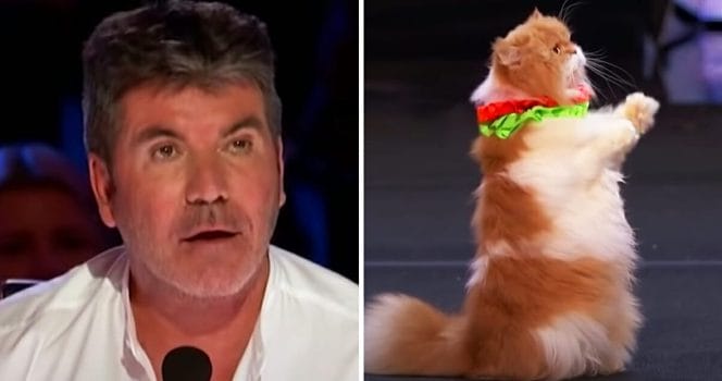 – Wow, den stackars hunden, svarade Simon Cowell i juryn på skämtsamt vis innan han bad duon visa upp katternas färdigheter.