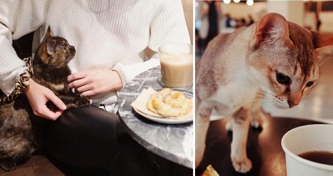 Hundvänliga kaféer har vi sett tidigare. Men det har inte funnits något ställe för katten att gosa – fram till nu.