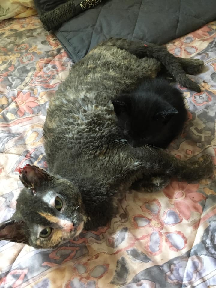 ”Deras mat förvarades i en lada, och ladan fattade eld, och hon sprang in i ladan för att hämta sina kattungar som fick sig något att äta,” sa Christine Koltun på Furget Me Not Animal Rescue till City News.