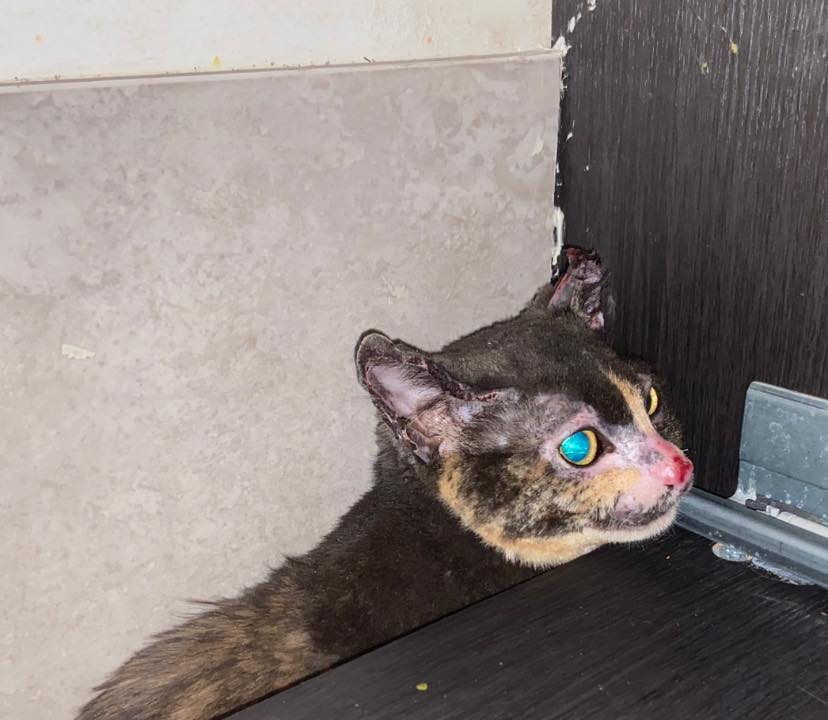 Men katterna var i stort behov av hjälp. Minka brändes inte bara allvarligt av branden utan fick rökinandning och fastighetsägarna kunde inte ge adekvat veterinärvård.