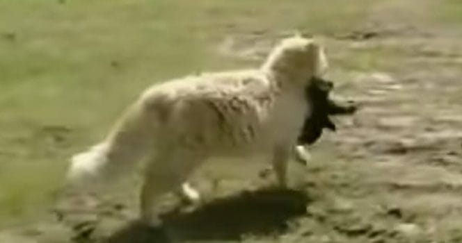 Bilderna på när Miss Kitty kärleksfullt lyfter upp grannhundens valpar och bär dem har förvisso några år på nacken, men det är lika fint att se den kärlek hon gav dem än i dag. Hon ville verkligen bli mamma, och fick vara det åt grannens valpar!