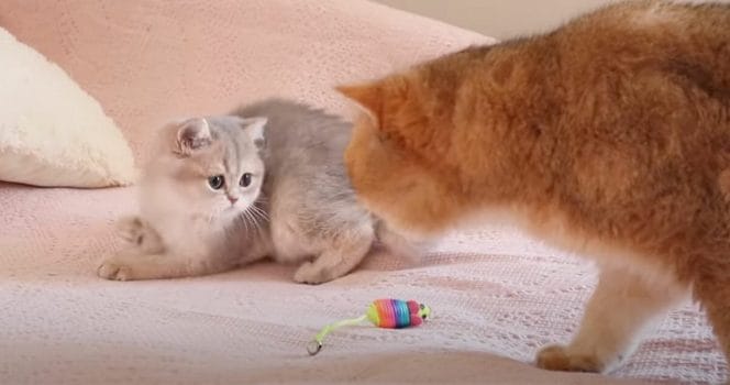 Tittarna får se hur det går till när katten lär känna sin kattunge och det är inget annat än underbart.