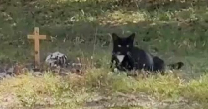 Nu hade en annan, svart katt, slagit sig ned vid gravarna. Katten stirrade tillbaka på paret Pickell. De blev förstås mycket fundersamma över vems katten var, och vad den gjorde där.