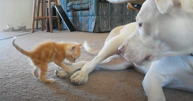 Det var när den nyblivna kattägaren kom hem med minstingen i familjen som den lite äldre hunden blev lite så där lagom nyfiken. Klippet där de möts och lär känna varandra för första gången har några år på nacken, men det bevisar ändå hur mycket vi kan lära av djuren.
