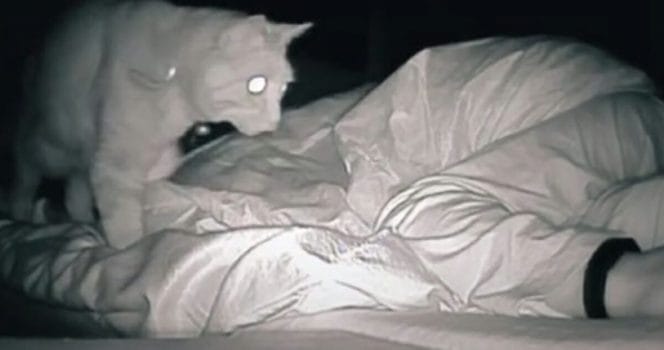 I klippet nedan kan man se hur katten Ginger gör sitt bästa för att få mattes uppmärksamhet mitt i natten: