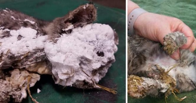Just in – Garbage man finds kitten encased in “spray foam” inside trash can. Deputies say this was an act of animal…