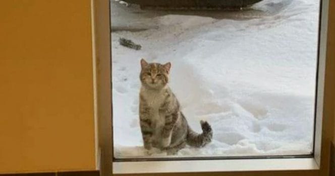 Den huttrande katten visade tydligt att hon ville in i värmen.