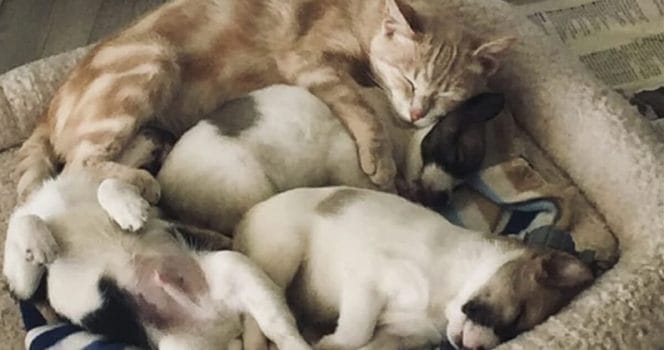 Det finns de som menar att katter och hundar inte kommer överrens. Men katten Kathryn bevisar om något att det är långt från sant. Hennes kärlek har nämligen inga gränser.