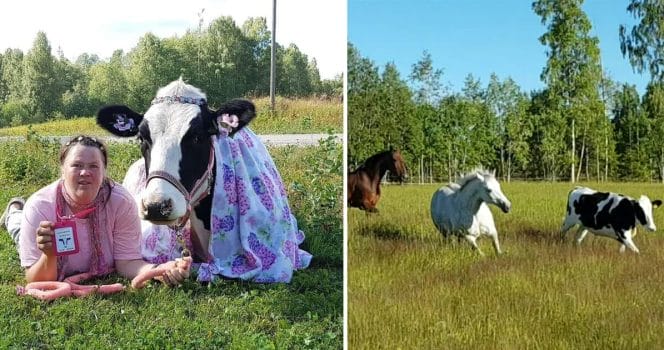 – Vi har fött upp fem generationer kor av Hildas släktingar. Det var dottern som ville ta hem en kalv men jag hade små förutsättningar. Men hon blev kvar. Vi märkte snabbt att hon började trivas med samma förutsättningar som hästarna, säger ägaren Marika Andersson till Newsner.