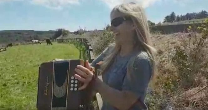 Det här söta klippet när den irländska musikern Sharon Shannon sitter på staketet till en kohage och plockar fram sitt dragspel får mig att smälta och små-le för mig själv.