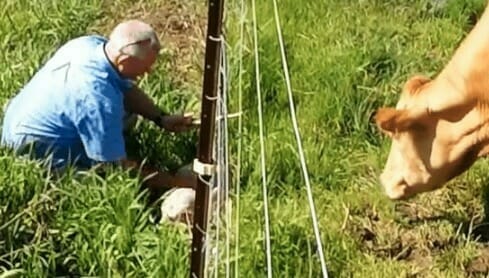 Han ville hjälpa den stackars kalven. Men det fanns bara ett problem – han visste först inte riktigt hur han skulle göra. Framför allt eftersom han var orolig för hur mamman skulle reagera.