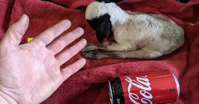 Här är bilden som Sarah tog på det lilla lammet, knappt större än en läskburk!