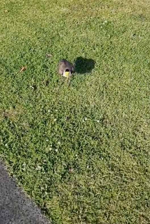 Kvinnan fick ögonkontakt med en desperat fågel som sprang omkring på gräsmattan.