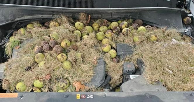Men ekorrarnas jakt på mat innebär också att vi människor måste vara uppmärksamma på var de lägger sin föda. En som nu vill varna alla är Chris Persic, vars fru hittade någonting otroligt under sin motorhuv.