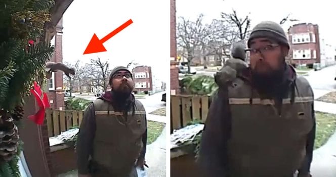 Som tur var fångade övervakningskamerorna den underbara sekvensen när brevbäraren får påhälsning av den söta ekorren. Se klippet nedan! Dela gärna vidare artikeln om du också blev glad av att se detta!