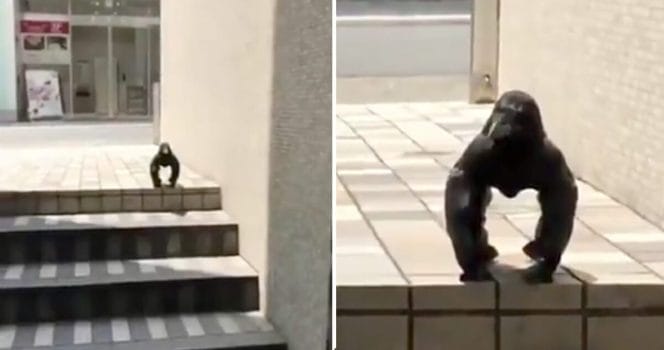 Kråkan på bilden tycks nämligen sitta som om den vore en gorilla. Med vingarna framåt så att det tycks som om kråkan står med hjälp av stöd från vingarna.