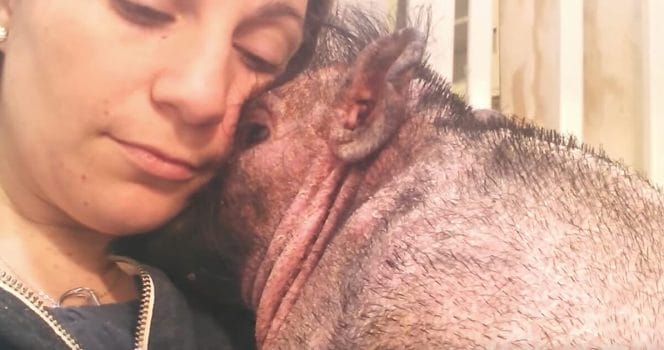Nu sprids det underbart vackra klippet på när hon försöker lugna honom inför operationen – genom att sjunga för sin gris.
