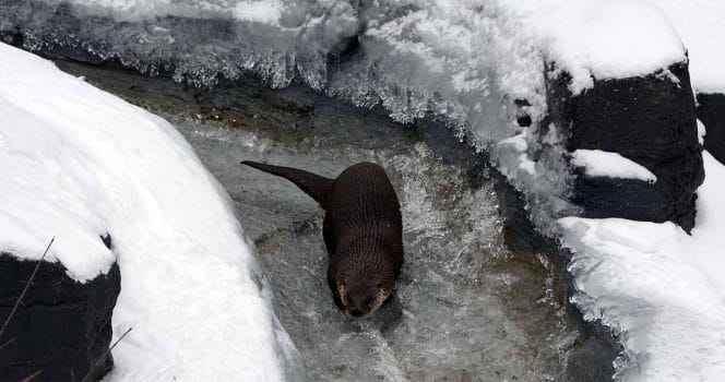 För där – upp genom hålet och ur det iskalla vattnet, uppenbarar sig snart hans kompis. Plötsligt tittar en liten utter upp ur isen – och går mot Seppo.