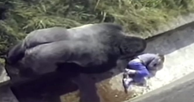 Det här hände på ett zoo i England. En 11-årig pojke besökte ett zoo tillsammans med sin familj när han plötsligt föll ned i gorillans grop – ett stup nedför en hög betongvägg.