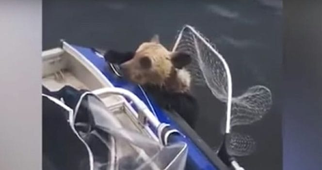 När de ryska fiskarna var ute med sin båt stötte de helt plötsligt på en stackars björn i vattnet. De insåg dock mycket snabbt att den inte var ensam.