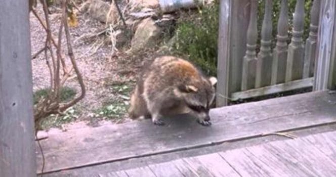 Det blev om inte annat den här familjen varse om, när de en dag fick besök av en tvättbjörn som hade med sig två högst oväntade följeslagare.