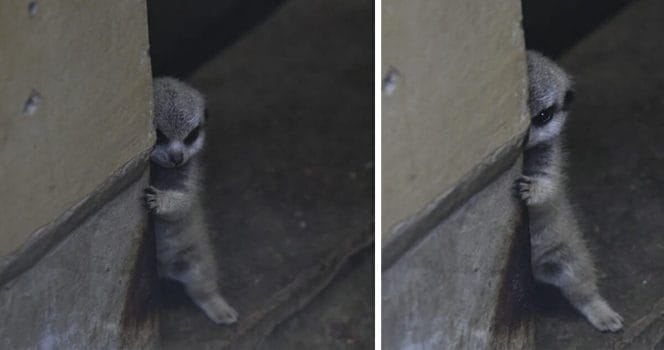 I den japanska fotografens kamerarulle finns en hel del bedårande bilder på djur, men också fascinerande. En av hans mest spektakulära fångster på bild är denna Surikatfamilj, särskilt en av bebisarna som visar att den är ganska blyg.