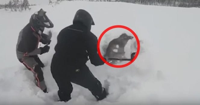 För plötsligt, mitt i det snöiga landskapet fick de syn på någonting sticka upp ur snön. Och när de närmade sig insåg de att en räddningsaktion var nödvändig.