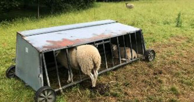 Den 27 juni fick en fotgängare i Wythenshave en syn som hen sent ska glömma. På ett fält där fåren går och betar hade ett får valt att gå till matstationen, en bur med galler för.