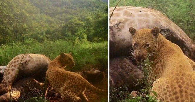 Om denna leopard är samma är osäkert, men vi får hoppas att om det inte är samma unge, att det finns fler! Så vackra djur! Så tur att han fångade detta på bild!