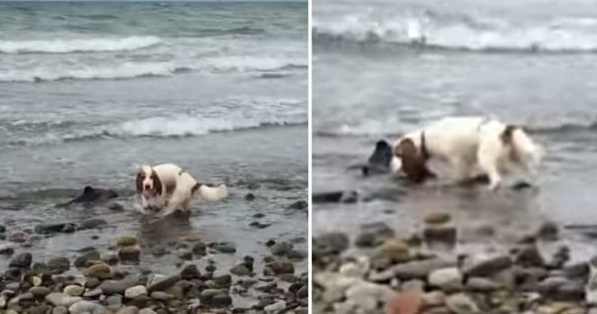 Vid strandkanten i Criccieth, Wales, började Leia att skälla och Rich förstod ingenting. Men snart såg han att någonting, som liknade en sten, rörde sig vid vattenytan.