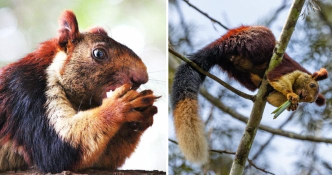 Den indiska jätteekorrens färger är så speciella att det är svårt att tro att djuret finns på riktigt.