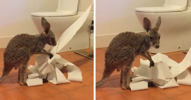 Känguruungen drar och drar i toapapperet, och allting fångas på film. Nu sprids bilderna som en löpeld på nätet, och visst