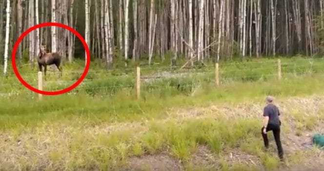 Vilken tur för kalven att rätt person dök upp på rätt plats. Älgar kan vara aggressiva – i synnerhet när de har kalvar. Så det var mycket modigt av mannen att göra detta.