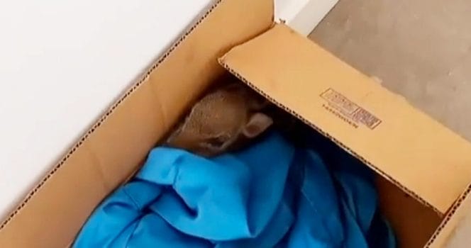 Utanför hemmet fanns en flyttlåda – men det var innehållet som förbryllade henne. Däri fanns nämligen en levande varelse.