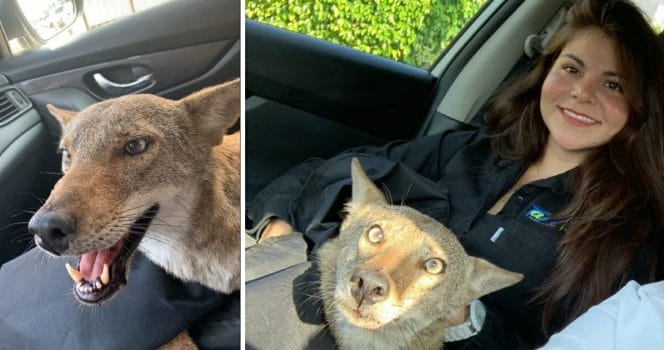 Det var nämligen inte en hund hon hittat, utan en prärievarg.