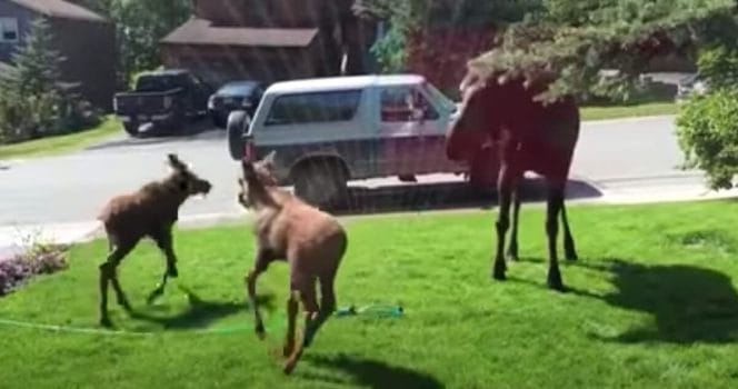 Här är älgarna som gör succé på nätet med vattenspridaren.