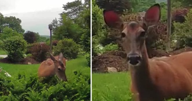 De har delat med sig av klippet då rådjuret kommer på besök på Youtube, och klippet har fått en halv miljon visningar.