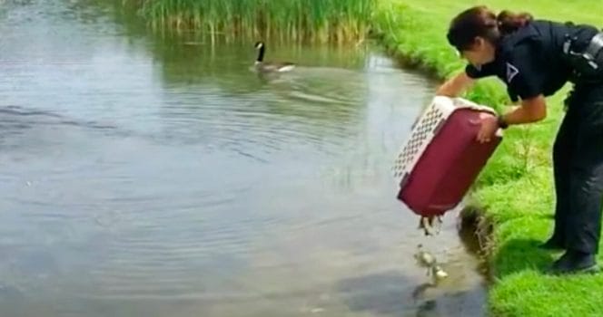 Poliskvinnan tog hand om de föräldralösa ankungarna.