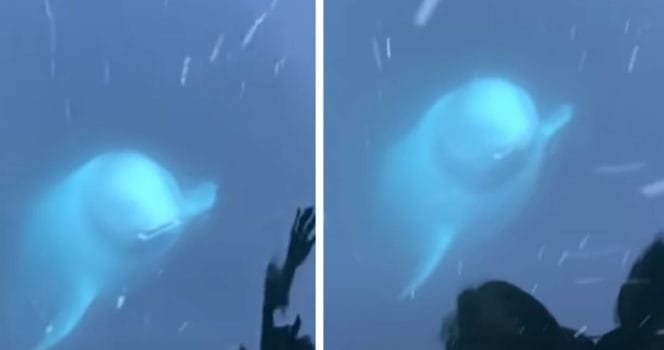 När hon och hennes sällskap kikade ner i vattnet såg de nämligen hur en Belugaval närmade sig.