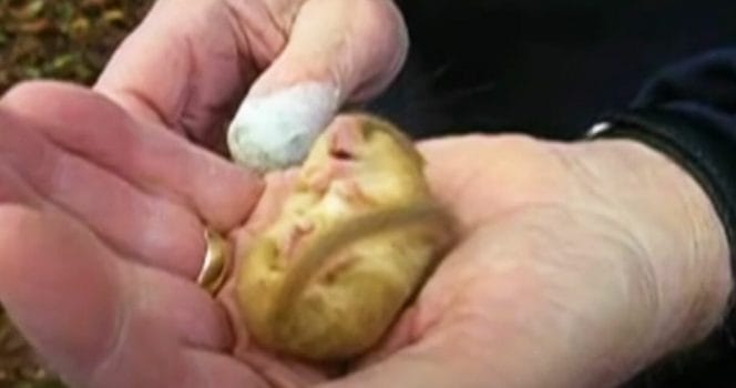 Liten gyllene varelse får plats i mannens hand – djurets speciella beteende fångas av kameran